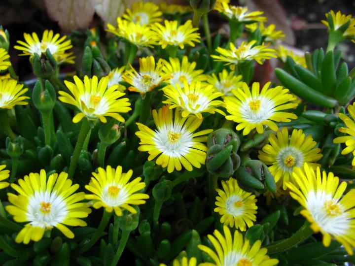Charakteristika: Delosperma ´JEWEL OF DESERT PERIDOTT®´ je obľúbená skalnička, ktorá sa v skalke rýchlo rozrastá a rozžiari výsadbu od apríla svojimi výraznými kvetmi. Kvety majú žlté lupene a biely stred zdobený zlatistými tyčinkami. Dužinaté zelené listy pôsobia exoticky a vzhľadom pripomínajú kaktus. Je vhodná aj na pestovanie v nádobách a vyniká v kombinácii s kameňom.