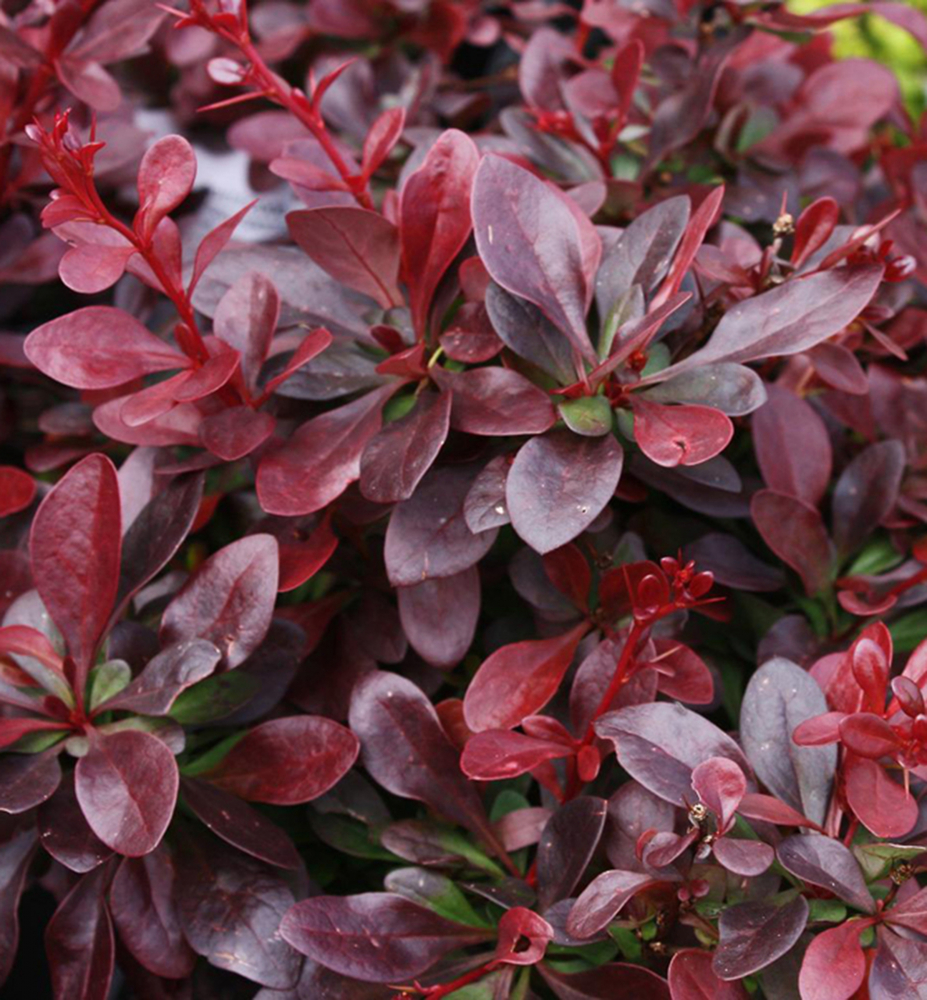 Nízky vždyzelený ker s lesklými listami purpurovej farby, výborný aj na živý plot.