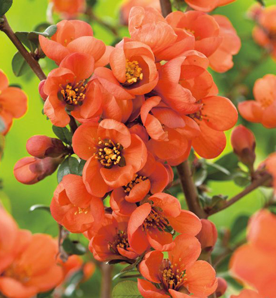 Nový opadavý, atraktívne kvitnúci ker s výraznými pomarančovými kvetmi.