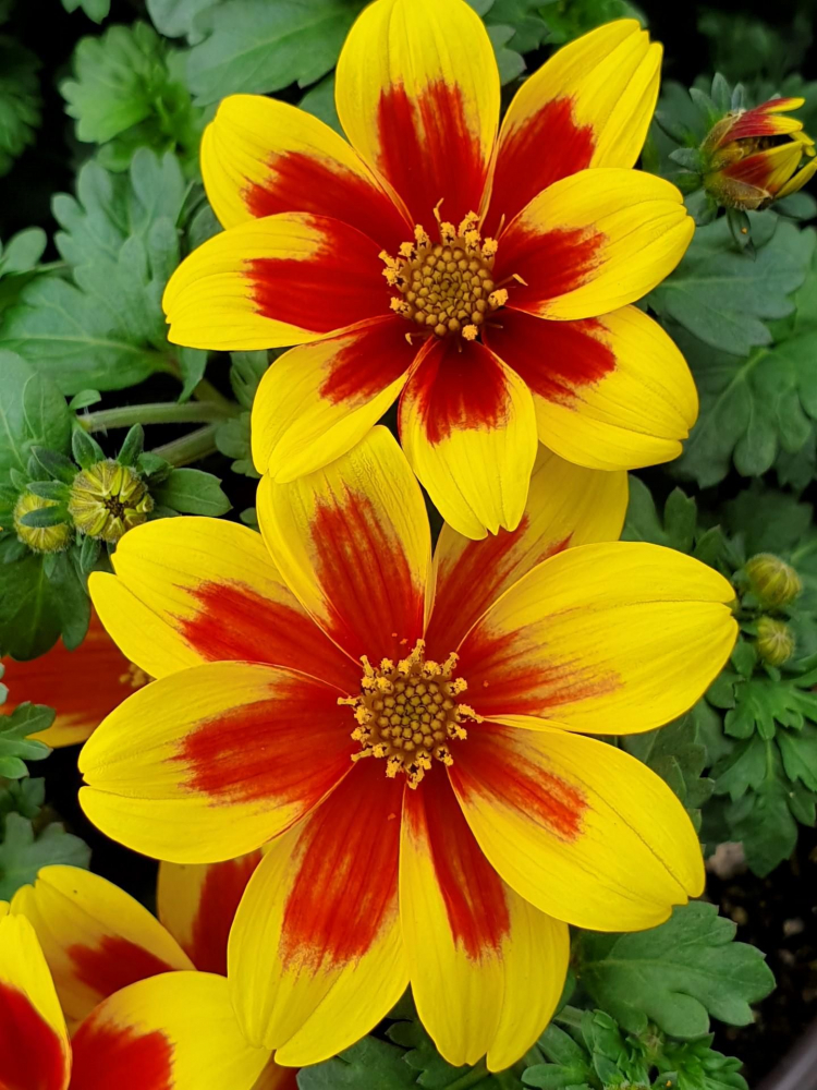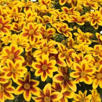 Očarujúca nižšia letnička s dvojfarbenými žlto-červenými kvetmi.