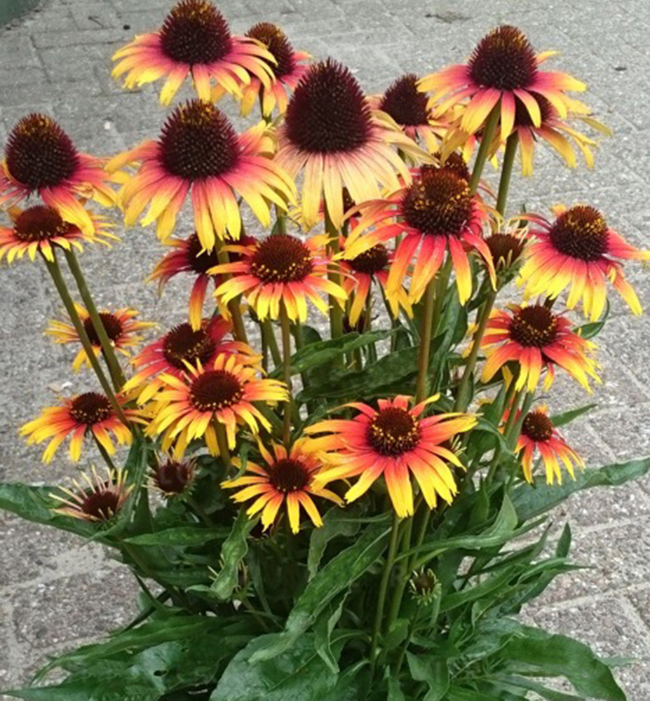 Obľúbená remontantná letná trvalka s dvojfarebnými žlto-červenými kvetmi.