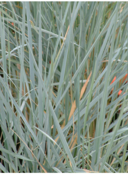Vždyzelená okrasná tráva tvoriaca hustý trs dlhých zelených listov.