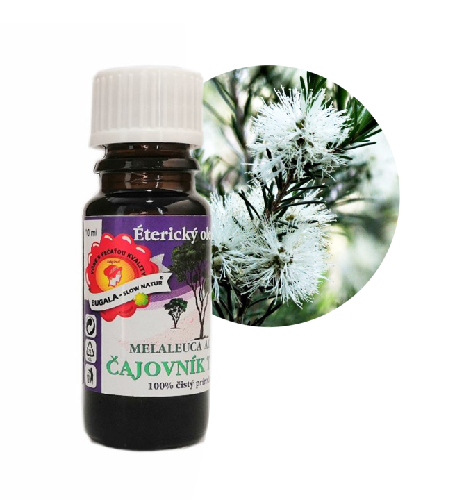 Charakteristika: 100% prírodný produkt, olej je určený k potieraniu, masáži, do kúpeľa. Čajovník Tea tree je najpoužívanejšie antiseptikum / dezinfekcia/. Používa sa na ošetrenie rán, popálenín, akné, ekzému, poranení v ústnej dutine, pri dezinfekcii horných a dolných dýchacích ciest. Kúpele v čajovníku napomáhajú pri vaginálnej a močovej infekcii.