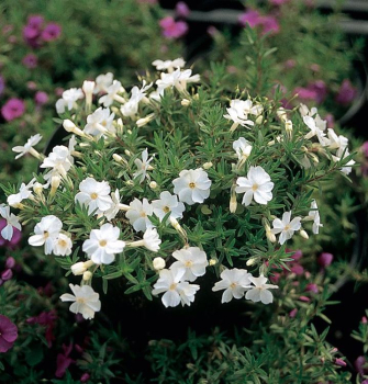 Voňavý snehobiely flox nižšieho vzrastu, vhodný aj na pestovanie v črepníku.