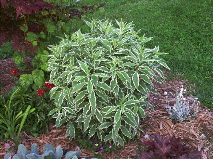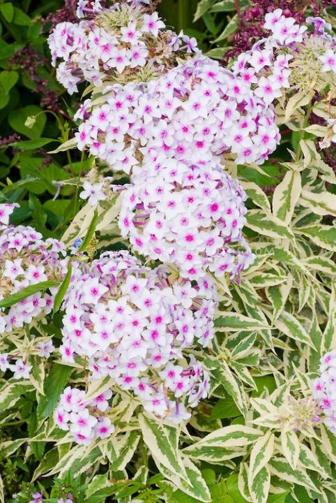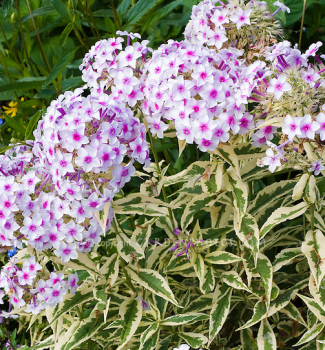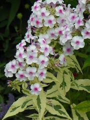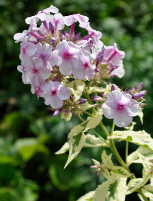 Charakteristika: Flox ´NORAH LEIGH®´ patrí medzi nové atraktívne odrody, ktoré vynikajú zaujímavými panašovanými listami. Nad krémovo-zelenými listami kvitnú od začiatku leta biele kvety s výrazným ružovým očkom. Flox metlinatý je bohato kvitnúca, odolná trvalka voči chorobám s dlhými drevnatými stonkami. Rastlina je mimoriadne atraktívna pre motýle.