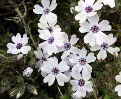 Bohato kvitnúca kobercovitá odroda s hviezdicovitými kvetmi snehobielej farby.