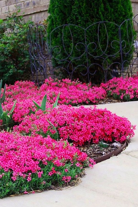 Nápadný vankúšovitý červený flox prechádzajúci do tmavoružových odtieňov.
