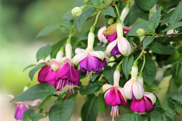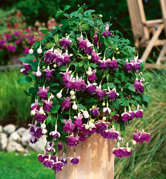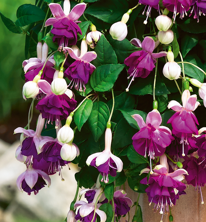 Trpasličia odroda s purpurovoružovými kvetmi a tmavými listami.