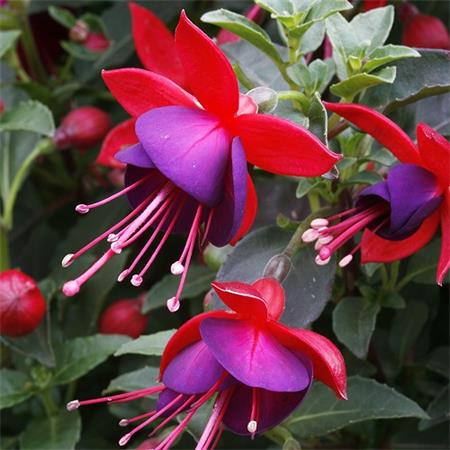 Charakteristika: Fuksia ´JOLLIES NANTES´ bohato kvitne počas sezóny neprehliadnuteľnými kvetmi, ktoré vzhľadom pripomínajú baletky. Vonkajšie červené okvetné lístky efektne dopĺňajú fialové vnútorné lupene. Z kvetu vyrastajú dlhé cyklaménové tyčinky. Listy sú lesklé, vajcovitého tvaru a tmavo zelenej farby.