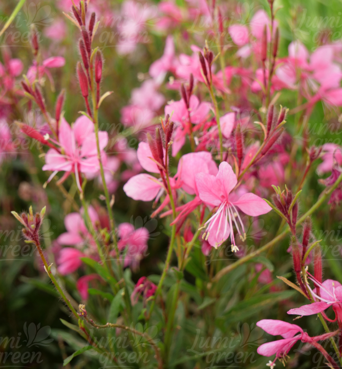 Charakteristika: Gaura ´FLAMINGO PINK´ je krásna trsovitá trvalka, ktorá poteší svojim kvitnutím. Vyznačuje sa štíhlymi červenými výhonmi, ktoré sú obrastené jemnými podlhovastými listami zelenej farby. Intenzívne kvitne od leta do jesene ružovými motýlikovitými kvetmi. Tento kultivar dorastá do výšky 40-50 cm. Vďaka dlhému obdobiu kvitnutia veľmi dobre vynikne v trvalkovom záhone, obzvlášť v kombinácii so šalviou, margarétou, kokardou a santolinou. Pestuje sa aj v črepníkoch.