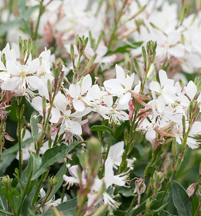 Charakteristika: Gaura ´GRACEFUL WHITE®´ je dokonalým príkladom pôvabu a elegancie. Jemné biele kvety sa vznášajú na tenkých zelených stonkách a pripomínajú drobné motýle. Rastie kompaktne do výšky maximálne 40 cm. Kvety príjemne kontrastujú s tmavozelenými listami. Túto obľúbenú trvalku vysádzame do zmiešaných trvalkových záhonov alebo do črepníkov.