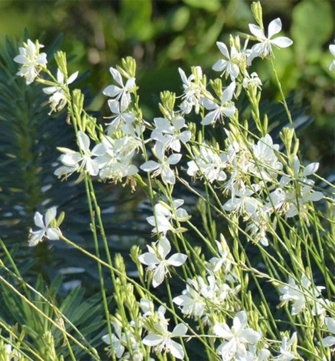 Charakteristika: Gaura ´SNOWBIRD´ so záplavou snehobielych kvetov je od jari až do jesene ozdobou každého záhonu. Rastie trsovito, jemné motýlovité kvety vyrastajú na dlhých tenkých stonkách do výšky 50-60 cm. Drobné listy sú kopijovitého tvaru tmavozelenej farby. Tento kultivar sa vyznačuje hustým a kompaktným vzrastom, je výbornou výplňovou trvalkou. Gaura efektne vynikne v spoločnej výsadbe so šalviami a margarétami.