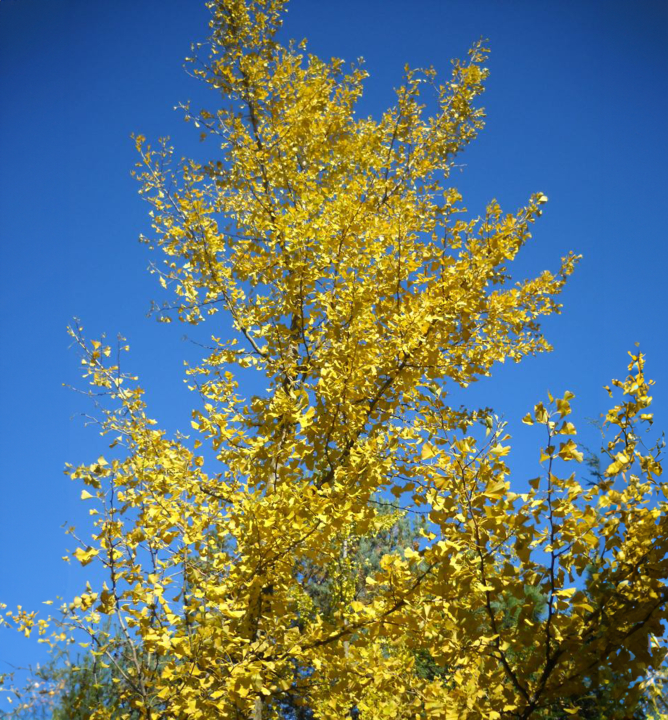 Ginko na kmienku s previsnutými výhonmi, vhodné aj na pestovanie v črepníku.