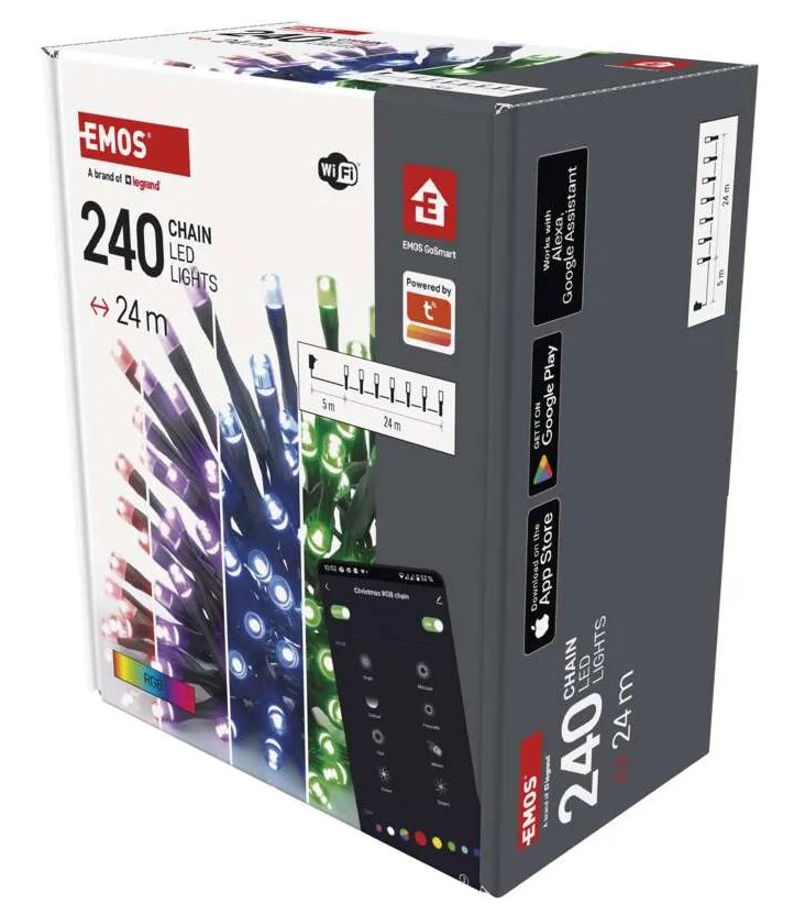 GoSmart LED vianočná reťaz, 24 m, vonkajšia aj vnútorná, RGB, programy, časovač, wifi