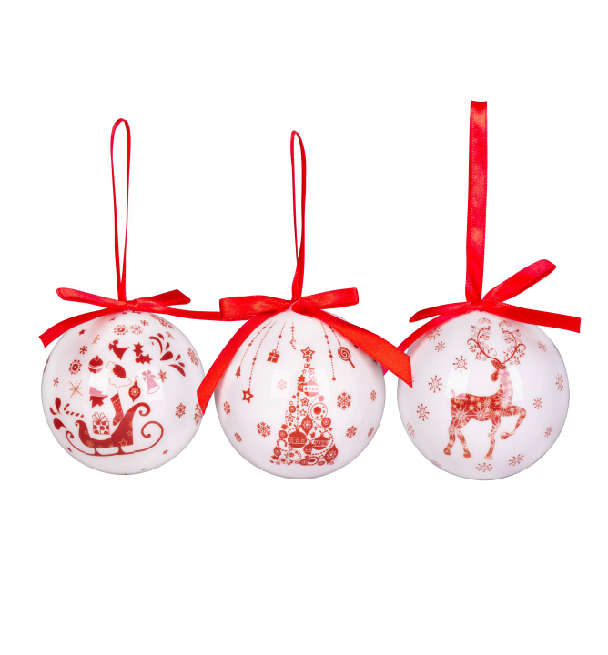 Charakteristika: Gule MagicHome s motívom stromčekov sú určené na slávnostné ozdobenie vianočného stromčeka. Balenie obsahuje 14 kusov. Priemer gule je 7,5 cm. Farba je červeno-biela. Gule sú nerozbitné.