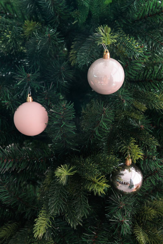 Sada vianočných ozdôb v jemnom ružovom odtieni.