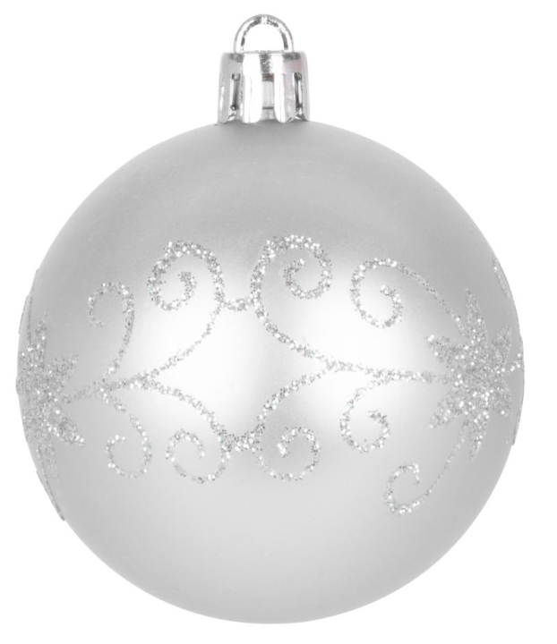 Charakteristika: Súprava ozdôb na stromček slúži na slávnostné ozdobenie vianočného stromčeka. Pozostáva z 20 ks vianočných guľ s priemerom 6 cm. Farba guľ je strieborná. Sú vyrobené z plastu.