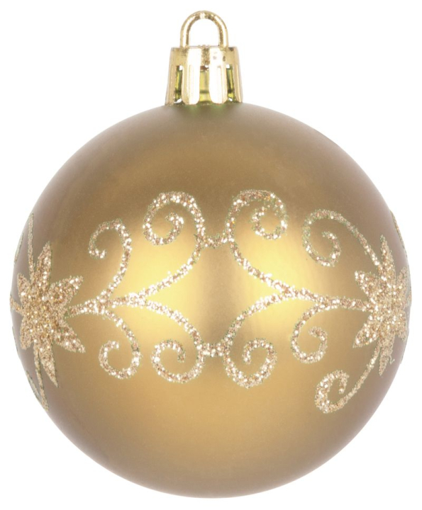 Charakteristika: Súprava ozdôb na stromček slúži na slávnostné ozdobenie vianočného stromčeka. Pozostáva z 20 ks ozdôb s priemerom 6 cm. Farba ozdôb je zlatá. Ozdoby sú vyrobené z plastu.
