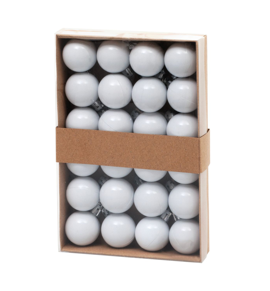 Charakteristika: Súprava ozdôb na stromček slúži na slávnostné ozdobenie vianočného stromčeka. Pozostáva z 24 ks ozdôb s priemerom 3 cm. Farba ozdôb je biela. Ozdoby sú vyrobené z plastu.