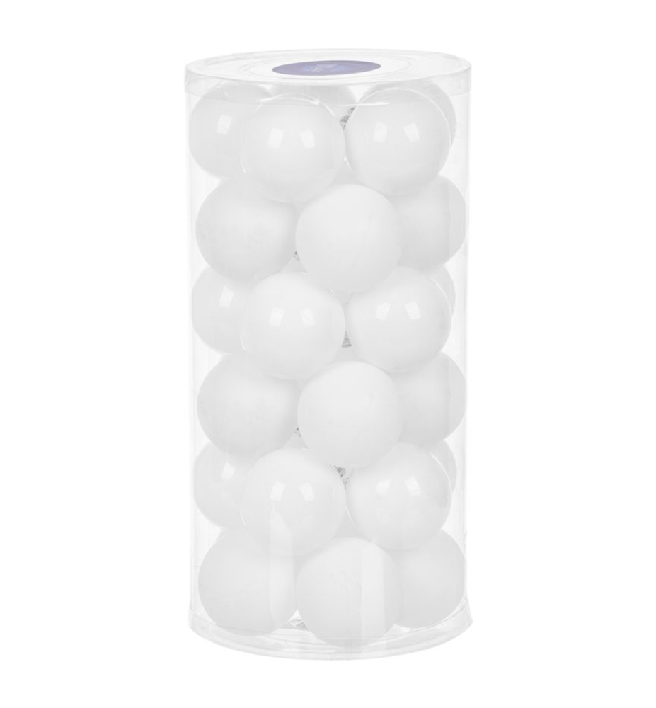 Charakteristika: Súprava ozdôb na stromček slúži na slávnostné ozdobenie vianočného stromčeka. Pozostáva z 30 ks ozdôb s priemerom 6 cm. Farba ozdôb je biela. Ozdoby sú vyrobené z plastu.