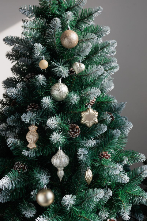 Charakteristika: Vianočná sada ozdôb obsahuje 32 kusov gúľ a ozdôb v modernom šampaň prevedení, ktoré krásne doplnia váš vianočný stromček. Mix rôznych tvarov a povrchových úprav (lesklé, matné, trblietavé) dodá dekorácii dynamiku a štýlový vzhľad.Tieto ozdoby sú vyrobené z odolného materiálu, ktorý zaručuje ich dlhú životnosť a bezpečné používanie.