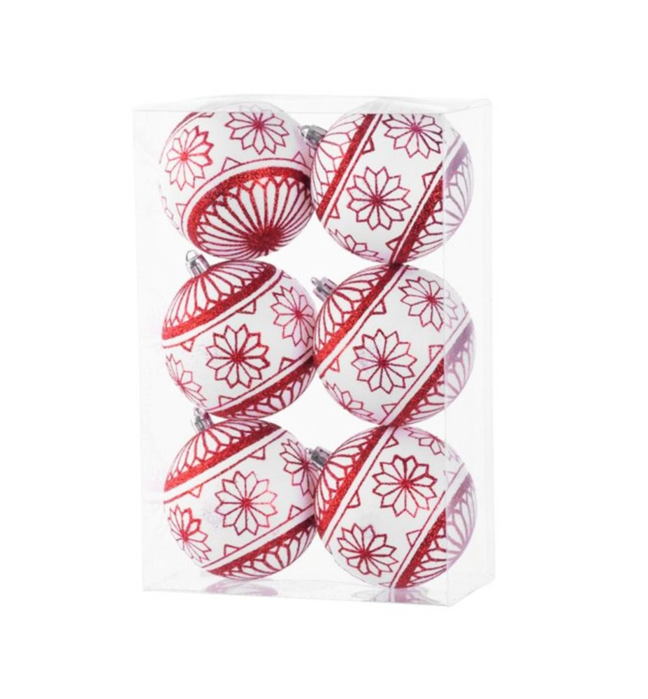 Charakteristika: Gule MagicHome sú vhodnou ozdobou vianočného stromčeka a interiéru počas vianočného obdobia. Balenie obsahuje 6 ks vianočných gúľ s priemerom 8 cm. Farba gúľ je červeno biela. Sú vyrobené z plastu.