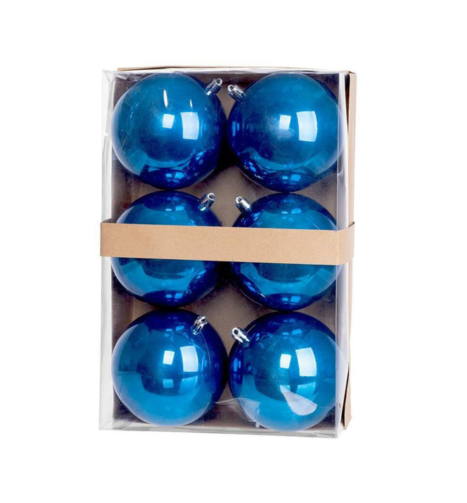 Charakteristika: Súprava ozdôb na stromček slúži na slávnostné ozdobenie vianočného stromčeka. Pozostáva zo 6 ks vianočných gúľ s priemerom 10 cm. Farba gúľ je modrá, perleťová. Sú vyrobené z plastu.