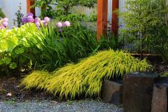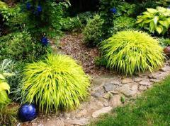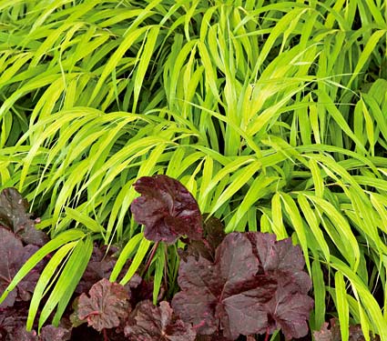 Jedna z najkrajších okrasných tráv s úzkymi, kaskádovitými zeleno-krémovými listami.