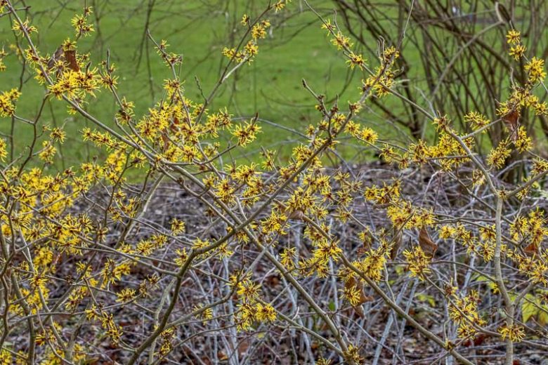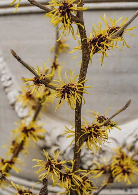 Oceňovaný hamamel s voňavými žltými kvetmi a jasne zelenými listami.