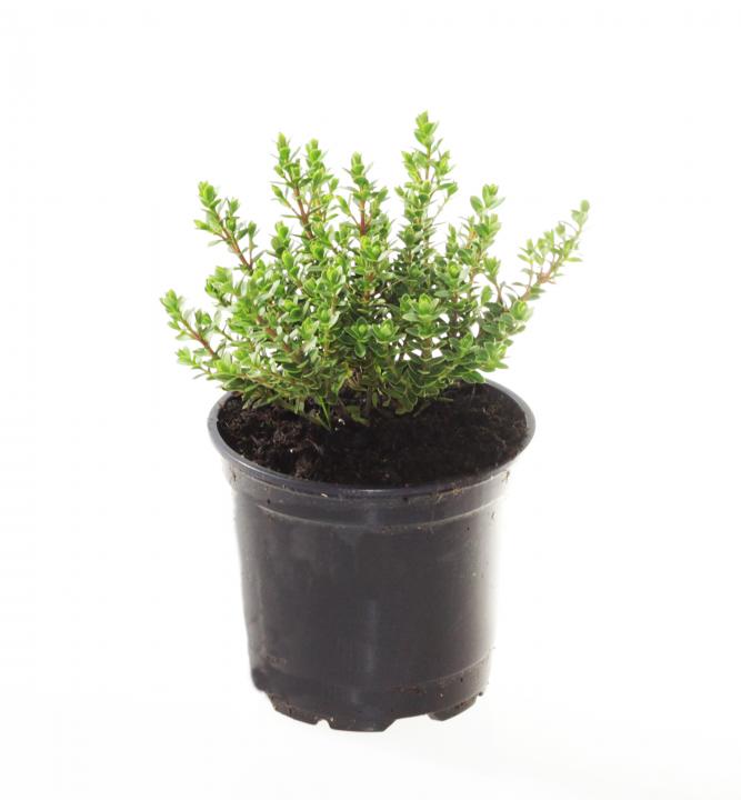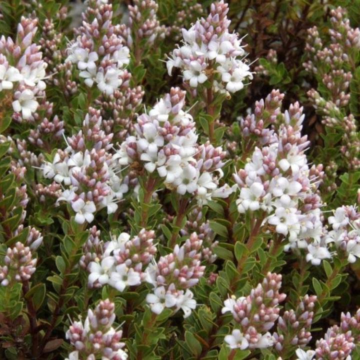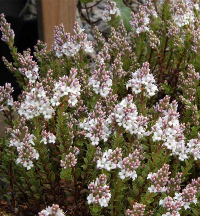 Trpasličie hebe s jemnými svetlozelenými výhonmi, vhodné na výsadbu do črepníka.