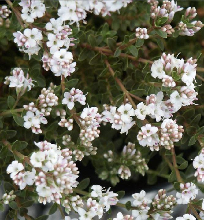 Nižší pôdopokryvný ker s drobnými bieloružovými kvetmi a liečivými listami.