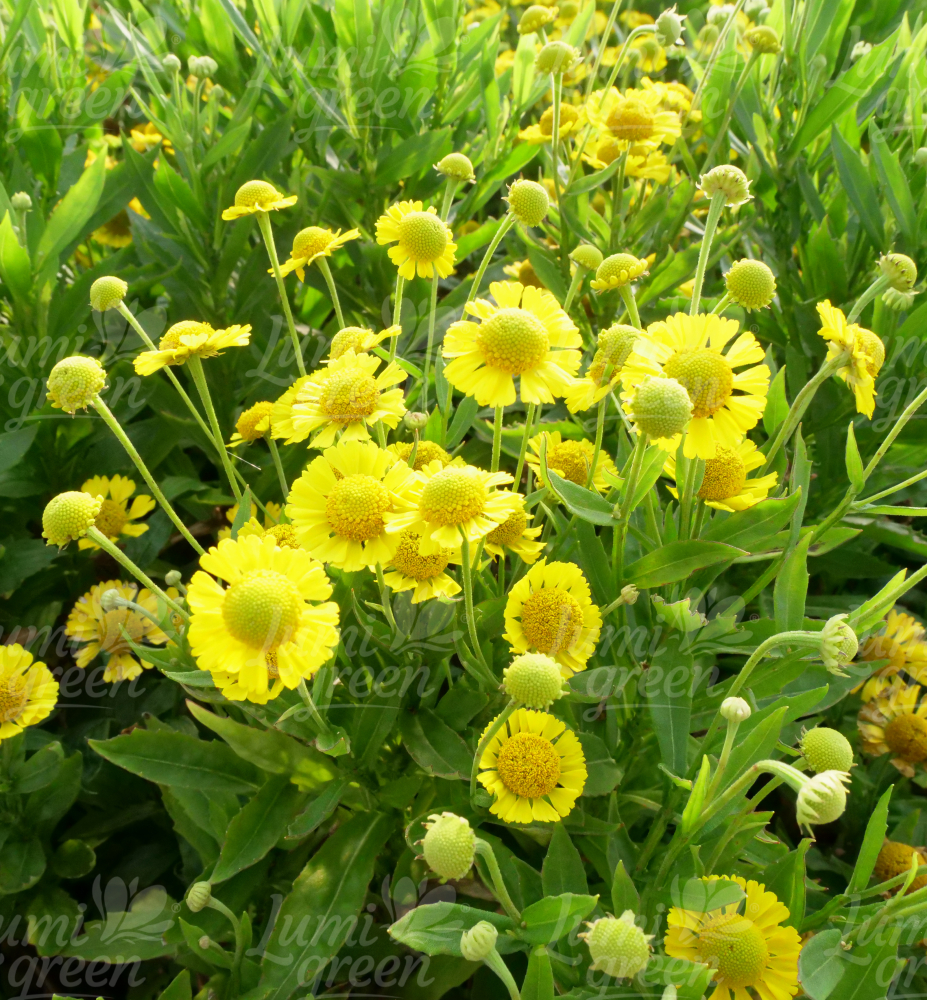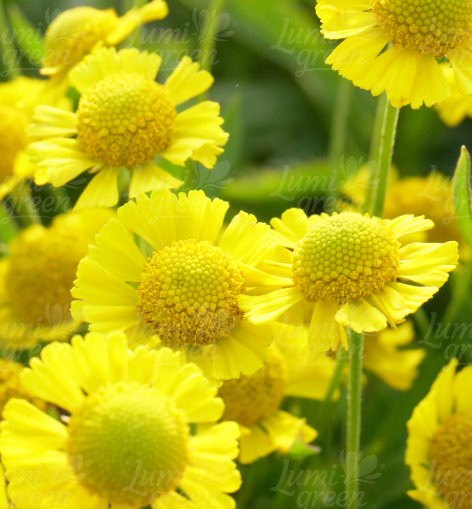 Príťažlivé helénium nižšieho vzrastu so žiarivo žltými kvetmi.