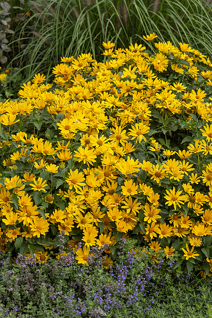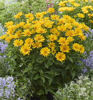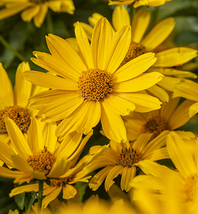 Vždyzelený pôdopokryvný ker s množstvom žiarivo žltých kvetov.