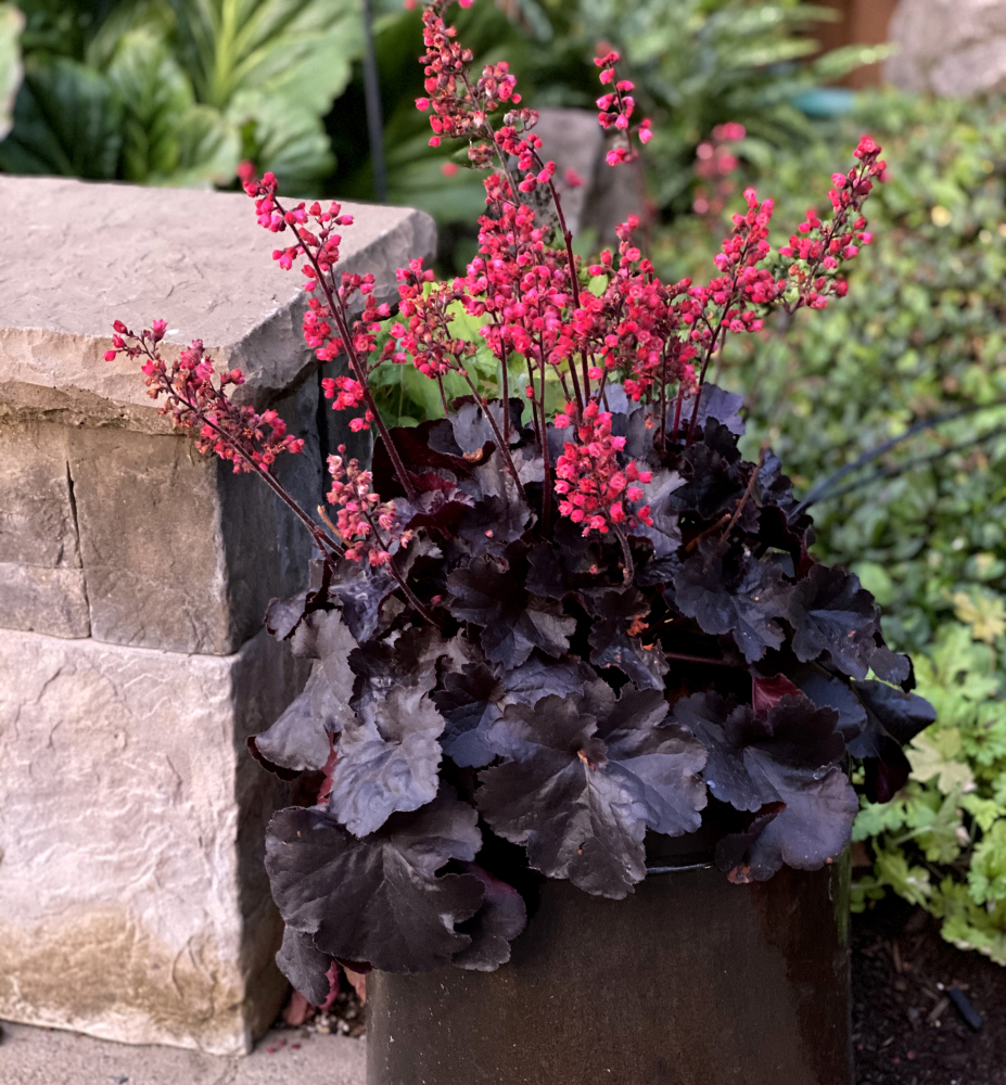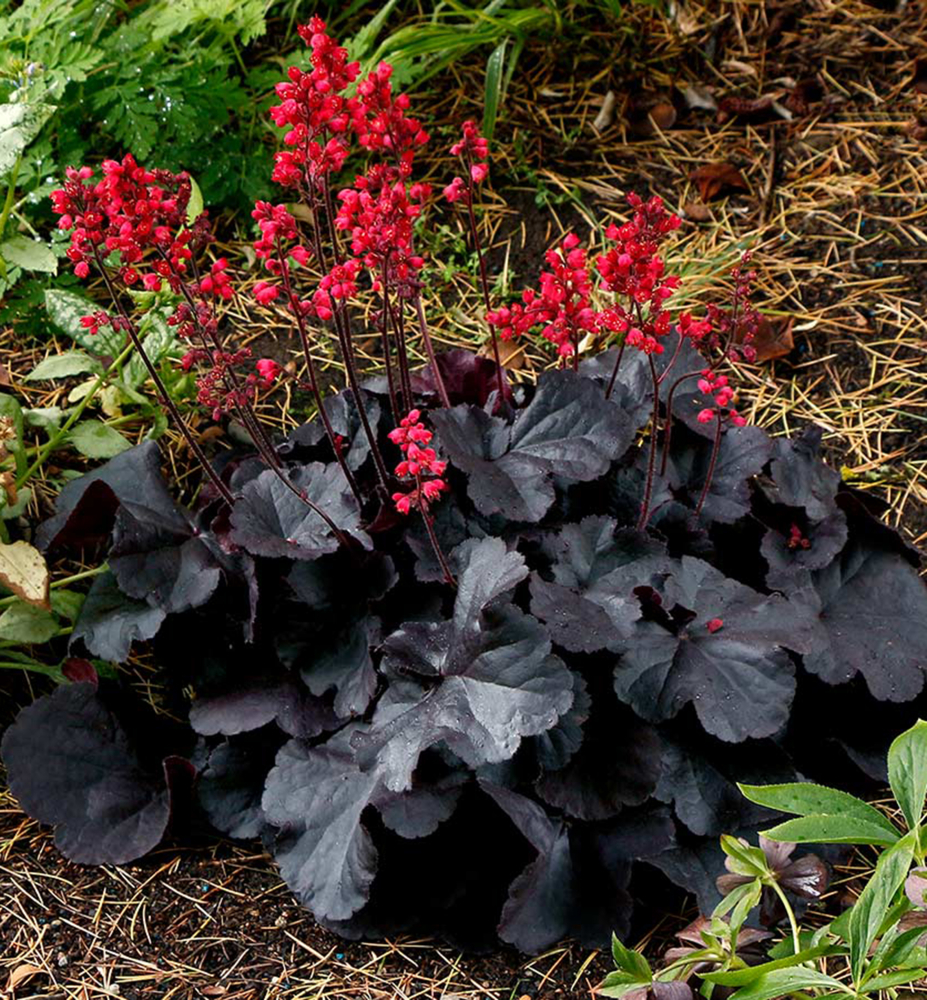 Charakteristika: Heuchera ´BLACK FOREST CAKE´ je kompaktná vždyzelená trvalka s tmavými listami a nápadnými kvetmi. Nariasené listy majú sýtu fialovočiernu až čokoládovohnedú farbu, pričom spodná strana je karmínovoslivková. Počas celého leta kvitnú na štíhlych stonkách súkvetia zvončekovitých svetlých čerešňovočervených kvetov. Heuchera dorastá do výšky 15-30 cm a tvorí hustý trs. V záhradách sa s obľubou vysádza najmä pre krásne farebné listy, ktoré sú mimoriadne dekoratívne a v našich podmienkach na väčšine druhov pretrvávajú aj počas zimy. Pomocou heuchery môžete vytvárať nádherné rastlinné kombinácie v záhradách alebo kvetináčoch.