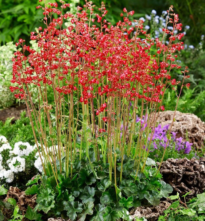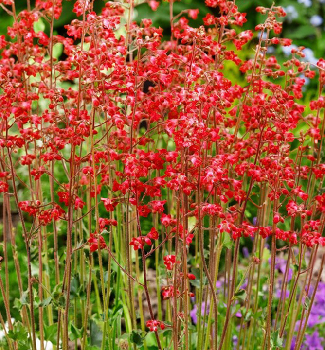 Charakteristika: Heuchera ´PLUIE DE FEU´ je trsovitá trvalka so vždyzelenými listami. Tie sú na jar svetlozelené, počas leta nadobúdajú tmavozelenú farbu. Celý list je zdobený striebristým mramorovaním. Počas leta kvitne množstvom svetločervených kvetov na dlhých stonkách. Rastlina dorastá do výšky 25 - 50 cm. Je ideálnou voľbou na výsadbu do tieňa a polotieňa – do záhonov, ako obruba chodníkov, do nádob na balkónoch a terasách, alebo do kombinovaných výsadieb s hostami, papraďami, tiarellami či bergéniami.