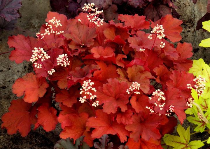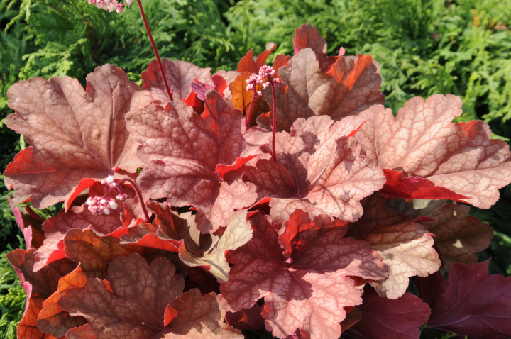 Jedinečná heuchera so žiarivými listami, meniacimi farbu počas sezóny.