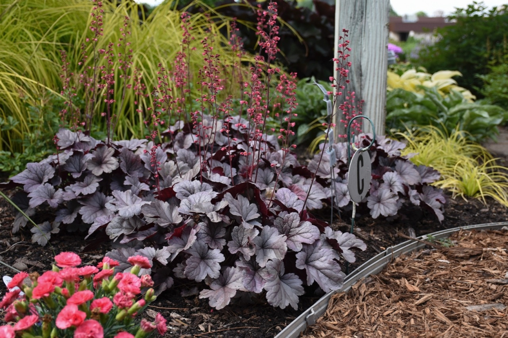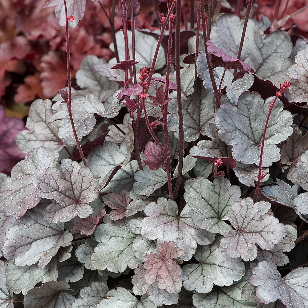 Charakteristika: Heuchera ´SILVER GUMDROP´ s efektnými bordovými listami a postriebrenou vrchnou stranou. Mladé listy môžu nadobúdať ružový odtieň. Sú zdobené výraznou sivou žilnatinou a ostávajú dekoratívne počas celého roka. Od júna do augusta rozkvitajú na dlhých bordových stonkách červenkasté kvety v tvare malých zvončekov. Táto odroda vytvára kompaktný stredne vysoký trs, dosahuje výšku 30-45 cm. Výborne sa kombinuje s ostatnými farebnolistými kultivarmi, s ktorými vytvára pestrú mozaiku. Darí sa jej aj v črepníkoch na balkónoch a terasách.
