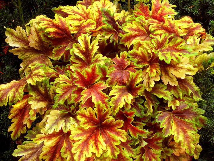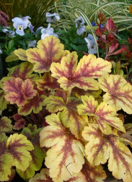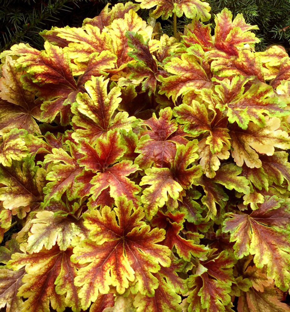 Charakteristika: Ohromujúca heucherela ´GOLD ZEBRA®´ dostala príznačný názov vďaka prekrásnym žiarivým zlatožltým listom s kontrastnou bordovou kresbou. Okraj listov je hlboko vykrajovaný. Vplyvom mrazu môžu listy získať ľahký hnedý odtieň. Výborne sa kombinuje s ostatnými farebnolistými kultivarmi, s ktorými vytvára pestrú mozaiku. Darí sa jej aj v závesných črepníkoch a nádobách na balkónoch a terasách.