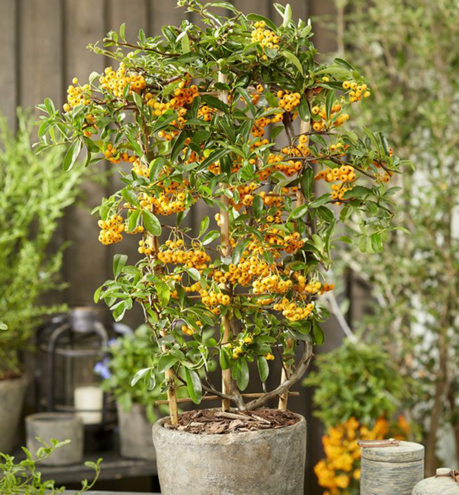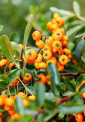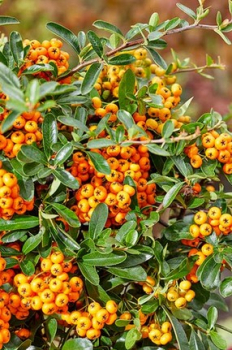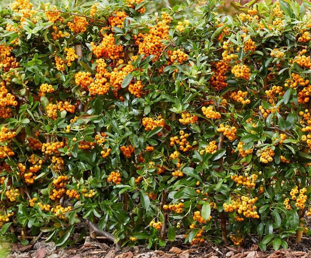 Vždyzelený stredne vysoký ker s tmavozelenými listami a sýtožltými plodmi.