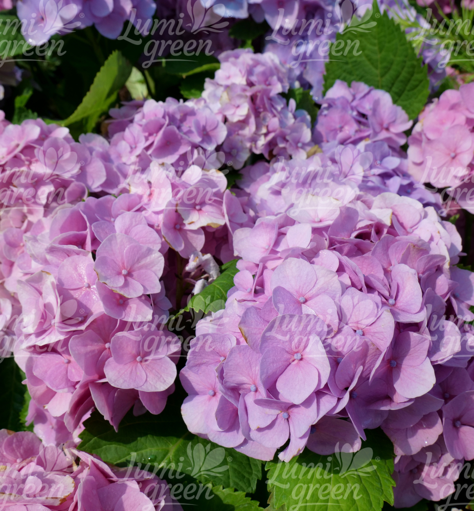 Nová, husto olistená hortenzia so žiarivými jasnoružovými kvetmi.
