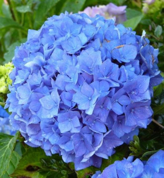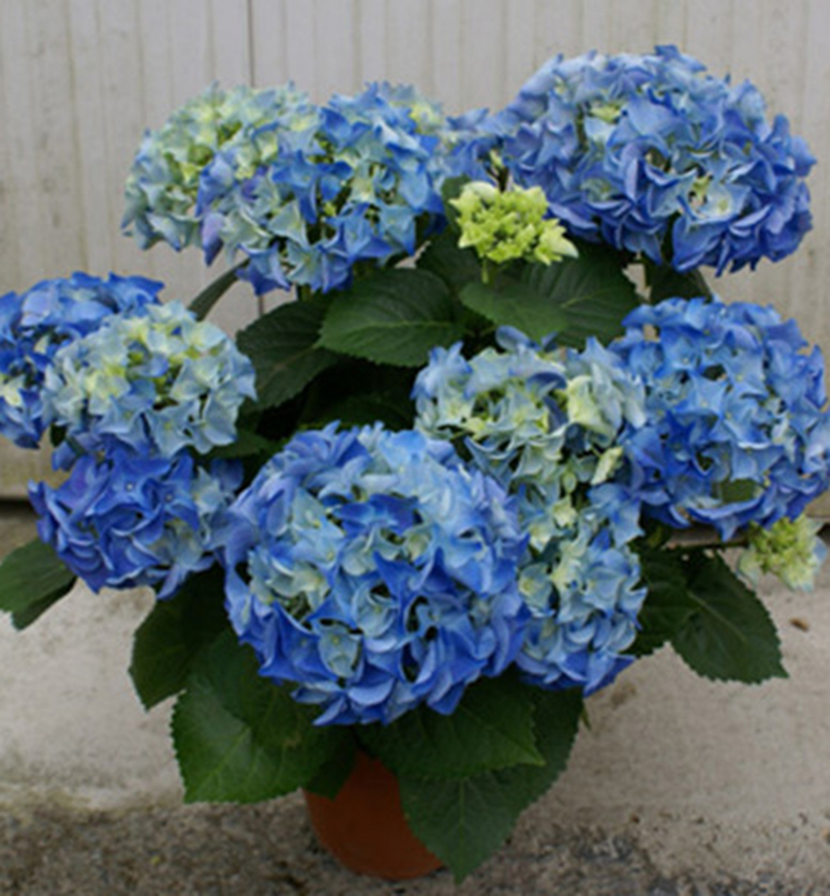 Nová, bohato kvitnúca hortenzia s guľovitými modrými kvetmi.