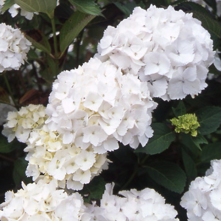 Nová, bohato kvitnúca hortenzia s guľovitými modrými kvetmi.