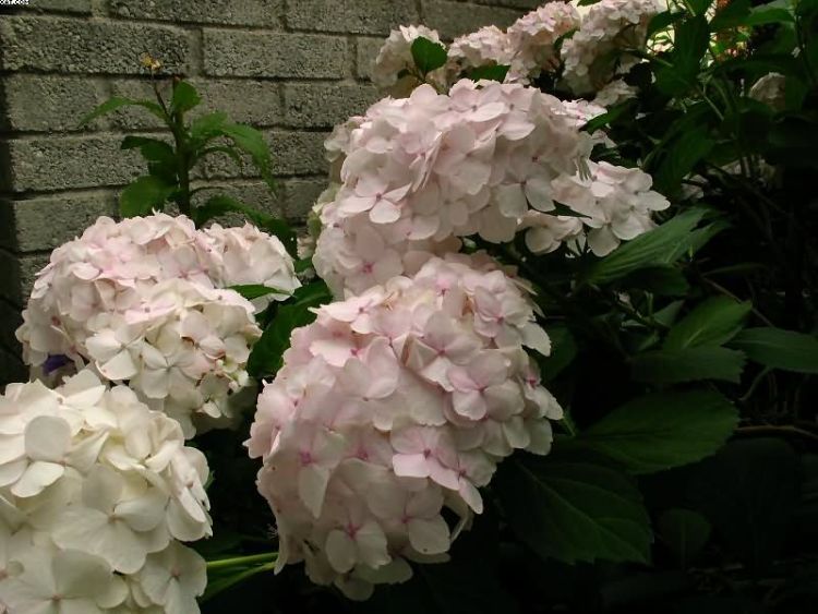 Populárna nenáročná hortenzia a mimoriadne veľkými bielo-ružovými súkvetiami.