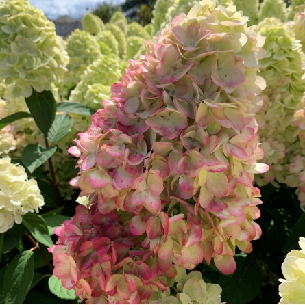 Charakteristika: Hortenzia ´BLOODY MARIE´ sa vyznačuje kompaktným habitusom, vďaka čomu je vhodná do záhrad aj väčších nádob. Kvitnutie začína v júli a často trvá až do jesene. Veľké (20-25 cm), kužeľovité súkvetia sa najskôr objavujú v krémovobielej farbe, neskôr prechádzajú do jemných odtieňov ružovej a v plnom kvete vytvárajú bohaté červené až sýto ružové tóny. Táto kmienková hortenzia je ideálna pre solitérne výsadby alebo na vytvorenie vizuálne dominantného prvku v zmiešaných výsadbách.