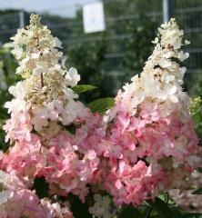 Populárna nenáročná hortenzia a mimoriadne veľkými bielo-ružovými súkvetiami.