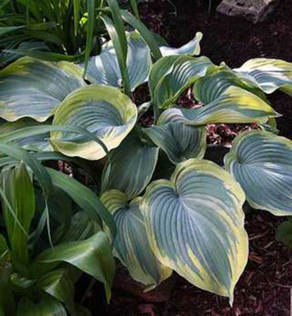 Charakteristika: Hosta ´EARTH ANGEL®´ vytvára veľké husté trsy výrazných listov, ktoré dorastajú do výšky 60 - 90 cm. Listy sú pevné srdcovitého tvaru s matnou modrozelenou farbou a nepravidelným krémovožltým, neskôr krémovobielym okrajom. Počas leta kvitne svetlolevanduľovými zvončekovitými kvetmi, ktoré sa nesú na sivozelených stonkách. Hosty sú vynikajúce trvalky do tieňomilných záhonov, kde vytvárajú pestré štruktúry vďaka rôznofarebným listom.