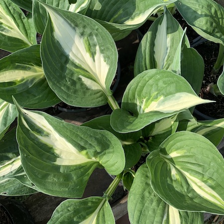 Elegantná trvalka vhodná do tieňa so zelenými listami s kontrastným stredom.