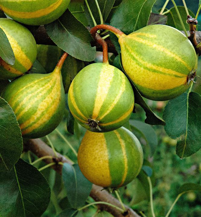 Rarita medzi hruškami - chutné žlto-zeleno pozdĺžne pruhované plody.