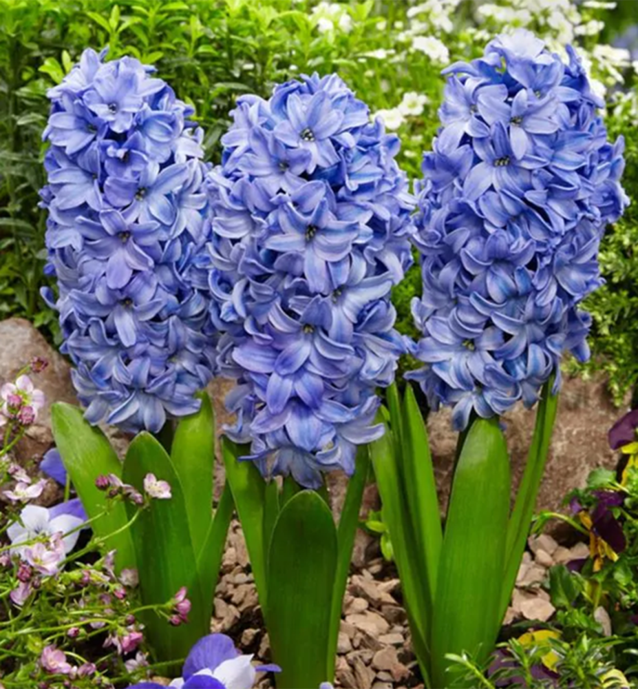 Pestovanie: Hyacint vysádzame do hĺbky cca 15 cm a od seba vo vzdialenosti 15-20cm. Po odkvitnutí je potrebné odstrániť suché kvety a rastliny prihnojiť tekutým hnojivom, pretože v tomto čase sa rozhoduje o bohatom kvitnutí v budúcom roku. Listy treba odstrániť až potom, keď začnú žltnúť.