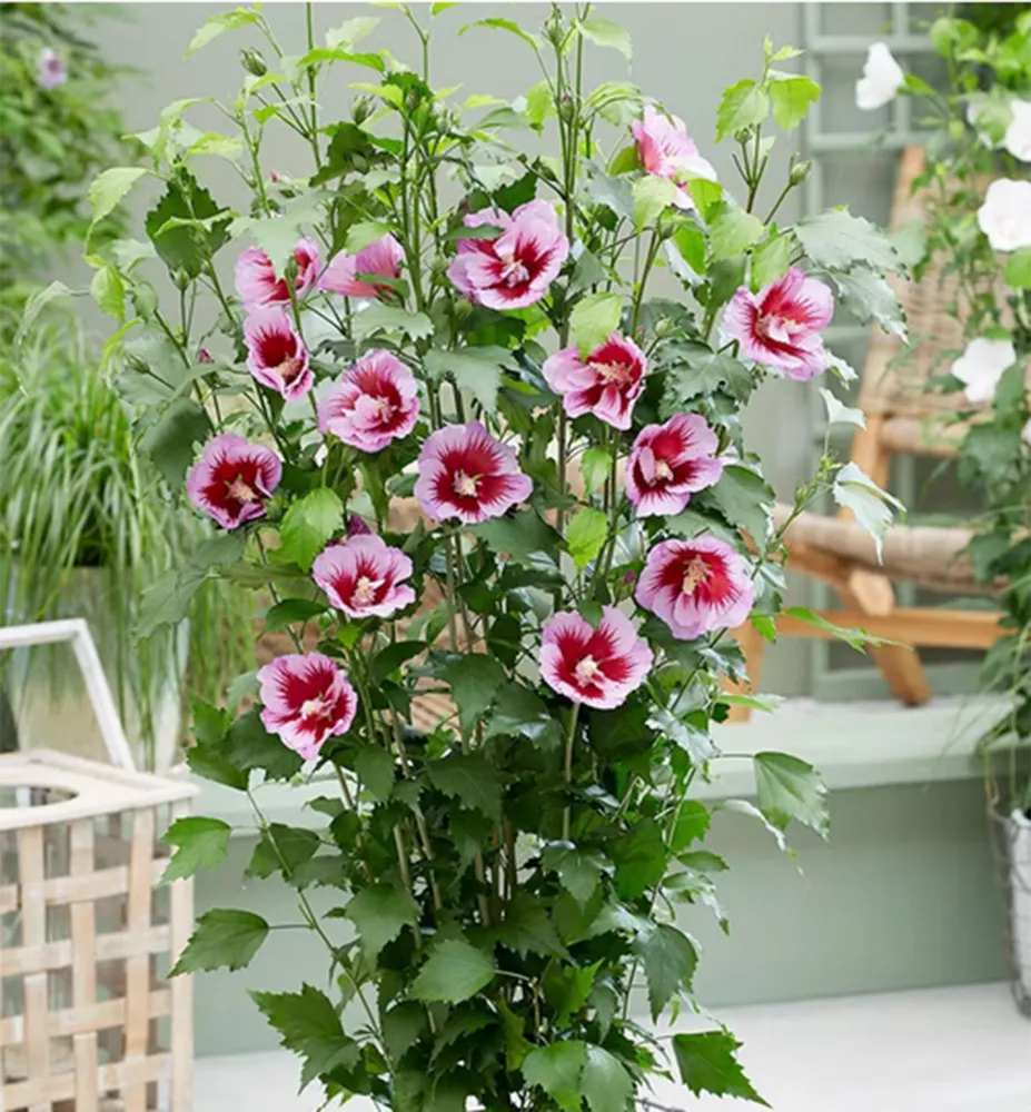 Charakteristika: Ibištek sýrsky "KVETINOVÁ VEŽA FIALOVÁ" má názov odvodený od úzkeho stĺpovitého vzrastu. Od júla do septembra kvitne nepretržite veľkými (8-10 cm) orgovánovofialovými kvetmi s kontrastným červeným stredom, ktoré priťahujú motýle a včely. Zelené listy sú na okrajoch pílkovité, počas jesene nadobúdajú žlté odtiene. Ibištek je vhodný na výsadbu do malých záhrad, na pestovanie v črepníku na terase, či ako dekorácia vchodov.